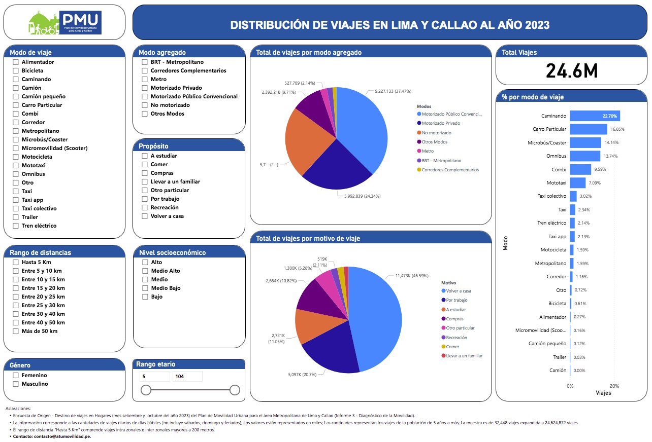 En el año 2023, la Autoridad de Transporte Urbano para Lima y Callao (ATU) recolectó información sobre el desplazamiento de las personas por la ciudad como uno de los insumos para su preparación del Plan de Movilidad Urbana (PMU) para Lima y Callao.